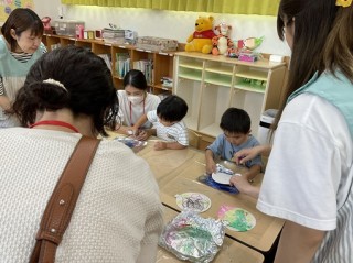 今日は保育参観で保護者の方と一緒に七夕製作をしました。朝の会の様子やお友だち同士の関わりも見ていただき嬉しそうな子ども達でした。